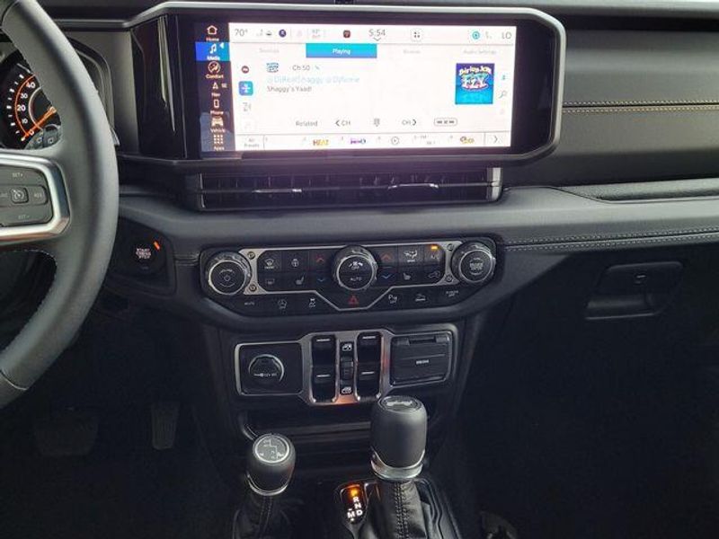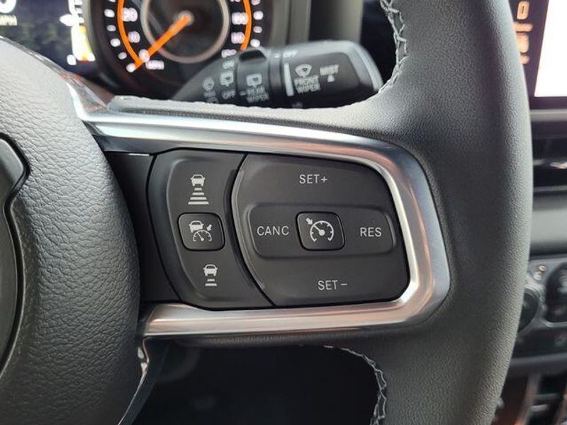 Inside, the Wrangler Sahara pampers you with premium features, including power-adjustable front seats, a heated steering wheel, and the advanced Uconnect 5 infotainment system with a 12.3-inch touchscreen display. The ALPINE PREMIUM AUDIO SYSTEM ensures your music sounds exceptional, while the SAFETY GROUP provides peace of mind with features like Blind Spot & Cross Path Detection.