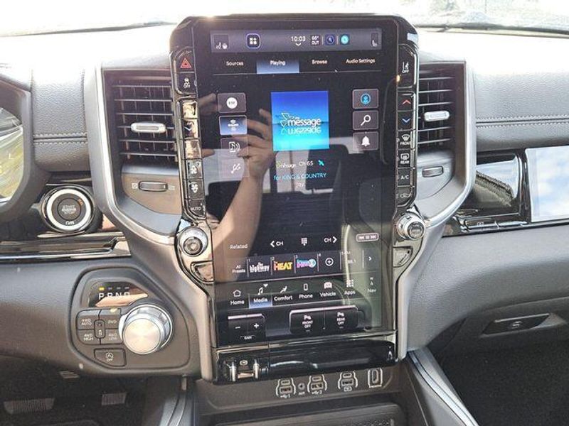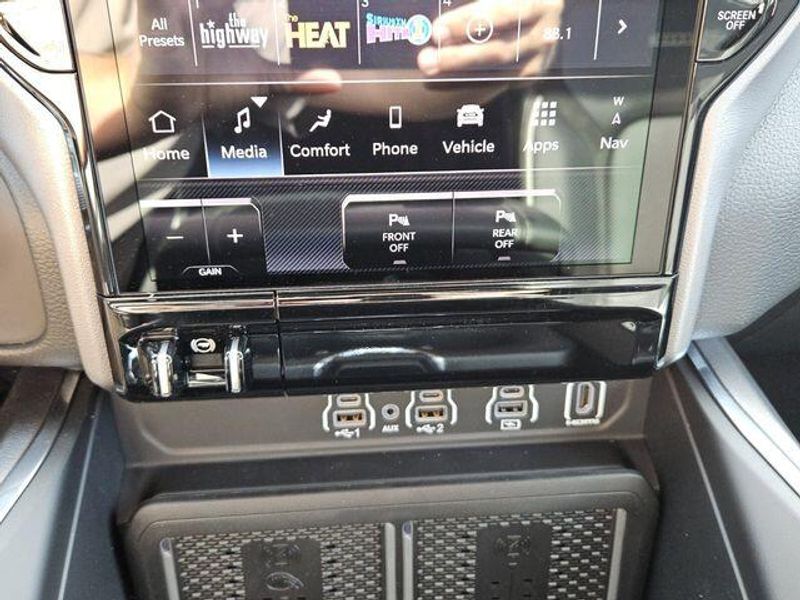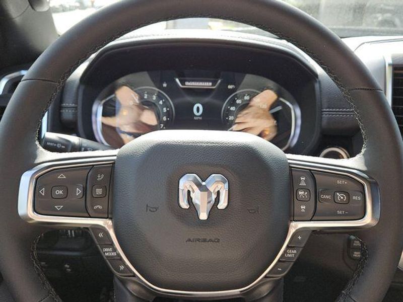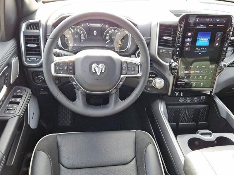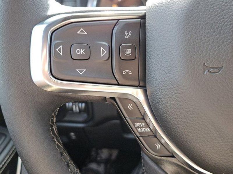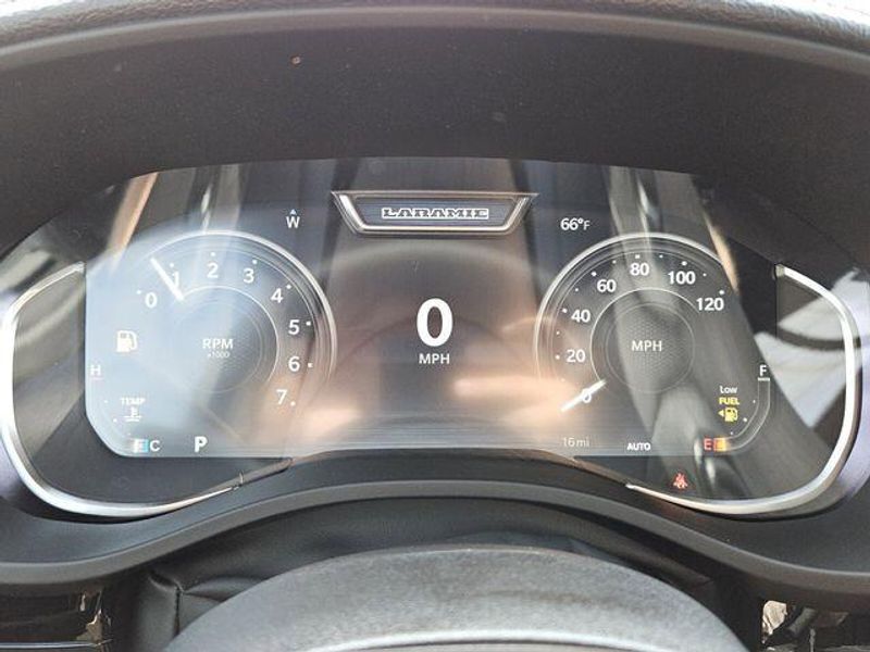 Inside, the cabin of the Laramie is a sanctuary of comfort and convenience. The 12'' Cluster Display, Heated Steering Wheel, and Dual-Zone Automatic Climate Control ensure you and your passengers travel in absolute luxury. The Uconnect 5 Navigation system with 14.4'' Display provides seamless connectivity and advanced features to keep you informed and entertained on the road.