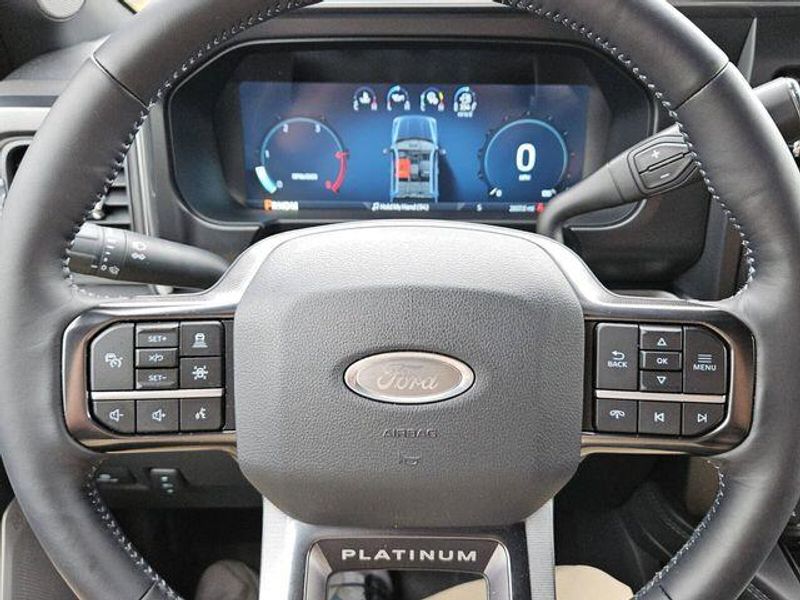 The interior of this Platinum model exudes refined luxury, with features like the 14-speaker B&O Unleashed Sound System, Heads-Up Display, and Unique Platinum Leather Seating. The Max Recline Seats and Heated Steering Wheel ensure uncompromising comfort, while the SYNC 4 with Enhanced Voice Recognition and Connected Navigation keep you connected and in control.